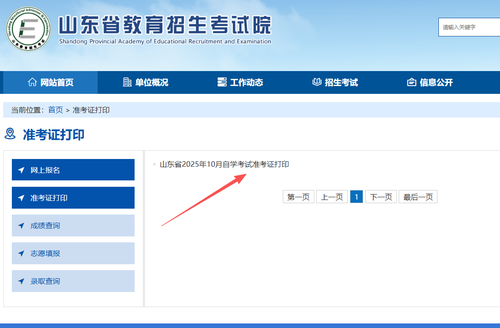 山东省2025年10月自学考试准考证下载流程山东省2025年10月自学考试将于10月25-26日进行,考生可于10月20日至26日(每天8:30至17:00)登录山东省教育招生考试院官网打印准考证,下面老师来给大家说一下准考证下载流程。 1、网页搜索“山东省教育招生考试院”进入招考院官网。