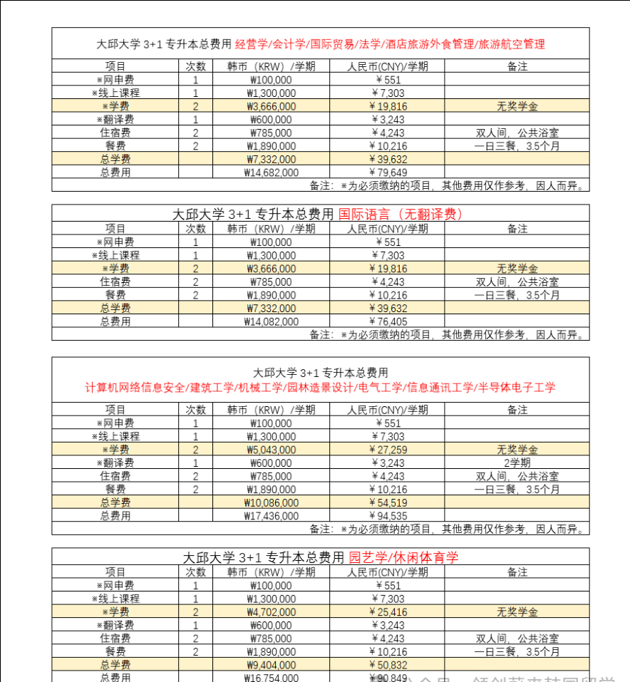 毕业要求 ①修满规定学分 ②韩语能力:参加学校42小时的韩语课程即可毕业 学校费用 ![]() 校园环境 ![]() 大邱大学校园风光 ![]()